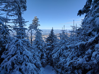 As Becca and I climbed higher and higher, we just kept smiling bigger and bigger, and kept looking at each-other to see if we were both really seeing this...it was simply stunning. Diamonds in the snow, the sunlight sparkling on snow-covered trees, the layers of purple mountains at the summit...just an amazing way to kick off a new year.